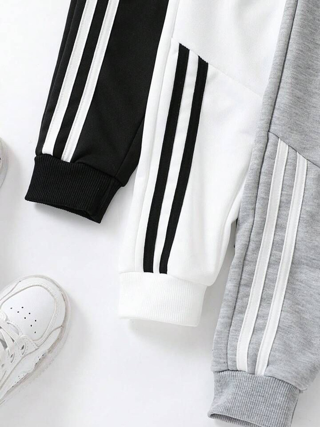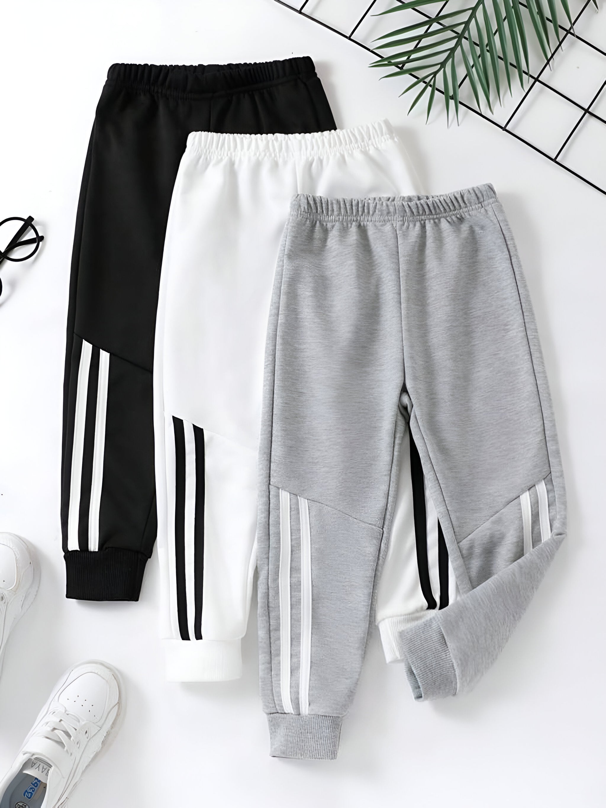 Boy's Cotton Knit Dino Printed Joggers Set Pack of 3 - White, Grey & Black