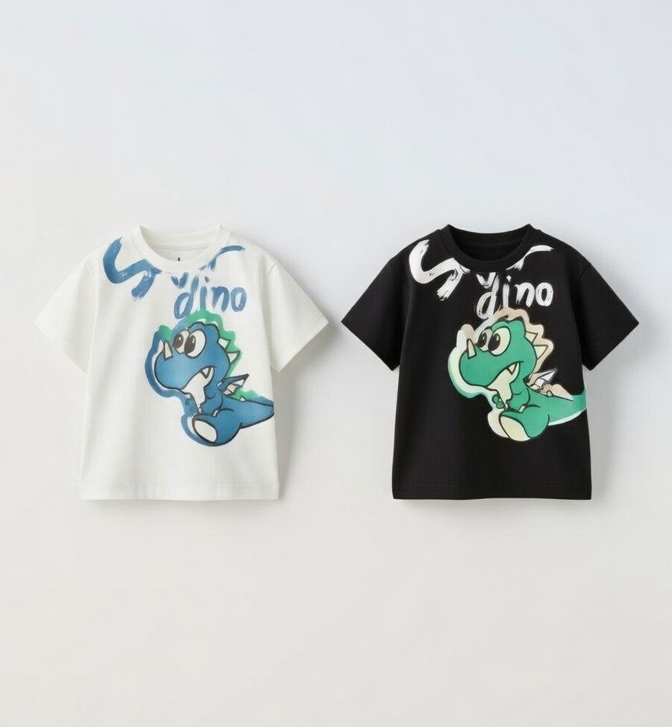 Boy's 2-Pack SuperDino Print T-Shirts - Black & White
