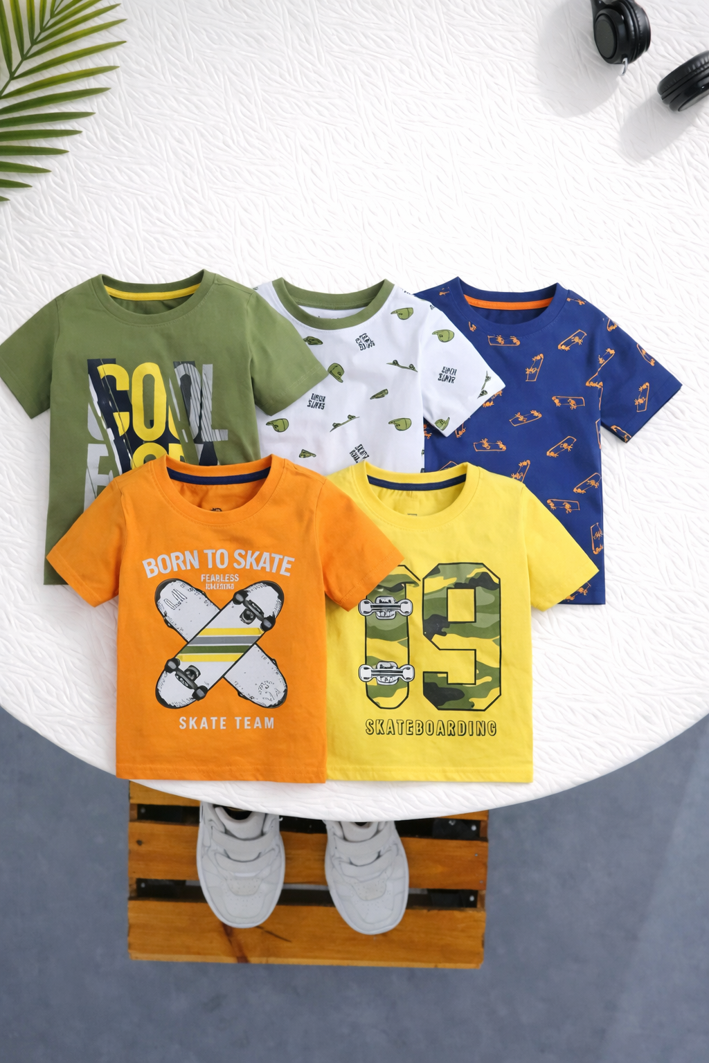 Boy's 5-Pack Skate Print Cotton T-Shirts