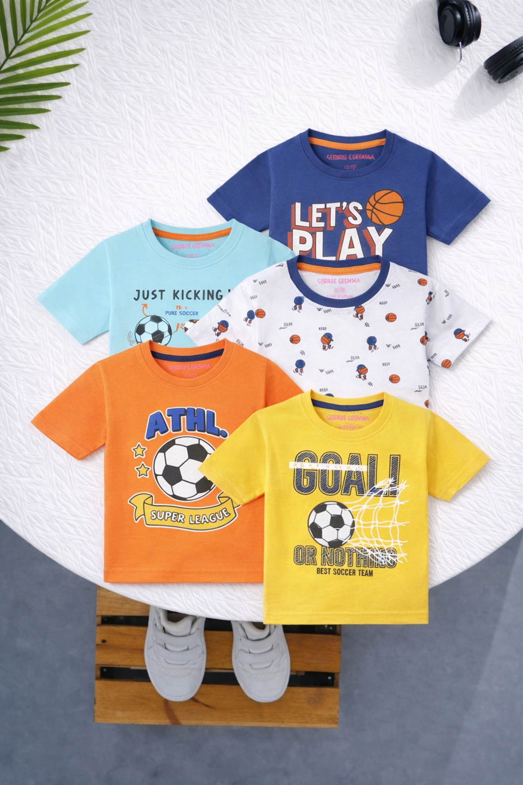 Boy's 5-Pack Basketball Print Cotton T-Shirts