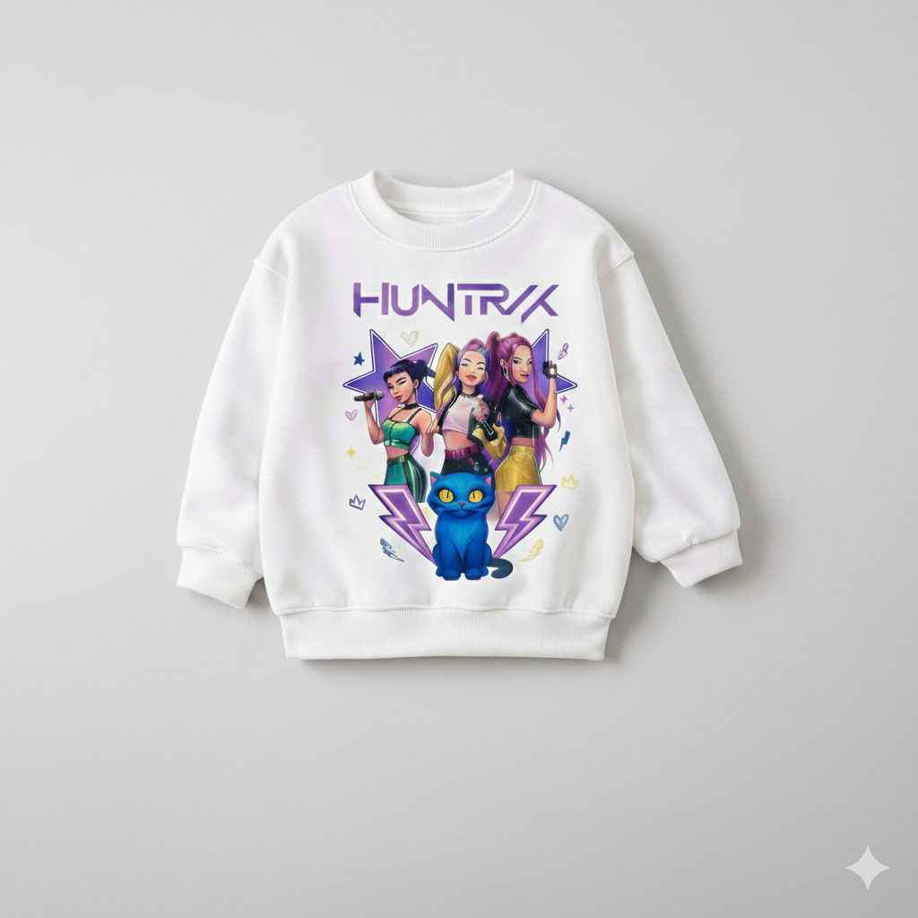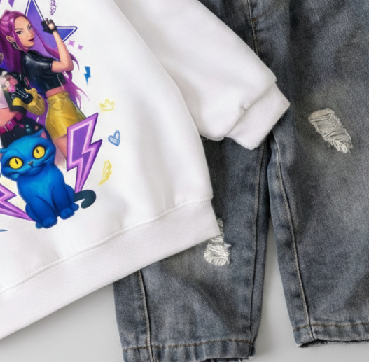 Girl's Cotton Huntrx Printed Sweatshirt With Jeans Set - White