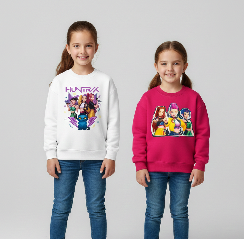 Girl's Cotton Full Sleeves Printed Sweatshirt Set Pack of 2 - Pink & White