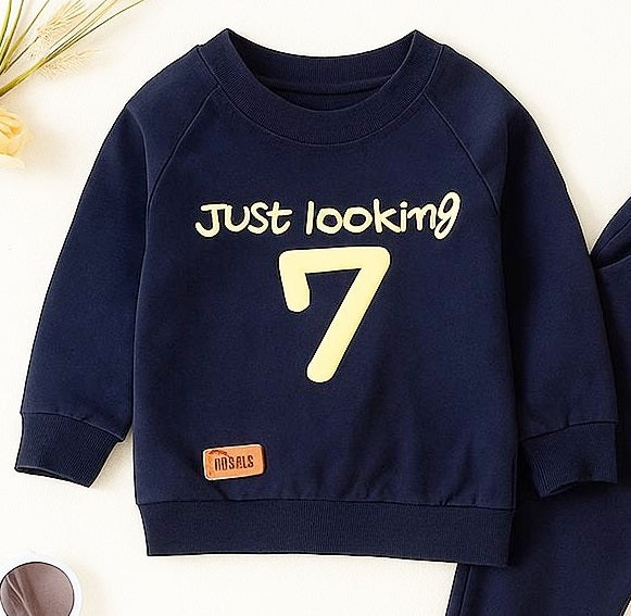 Boy's Cotton Knit Light Winter Text Printed Sweatshirt With Joggers Pant Set - Navy