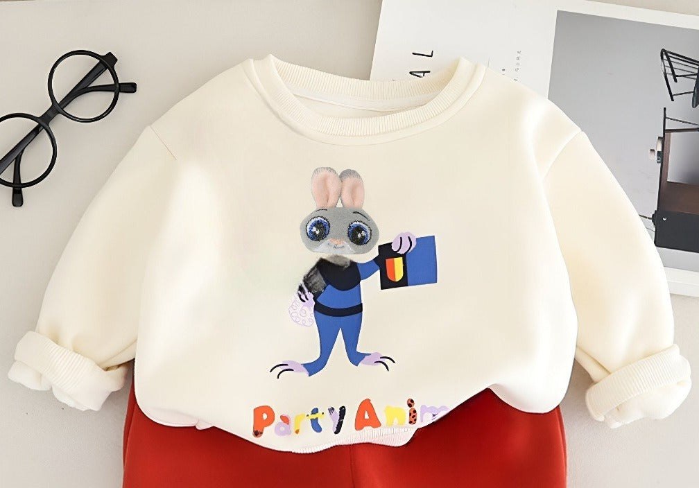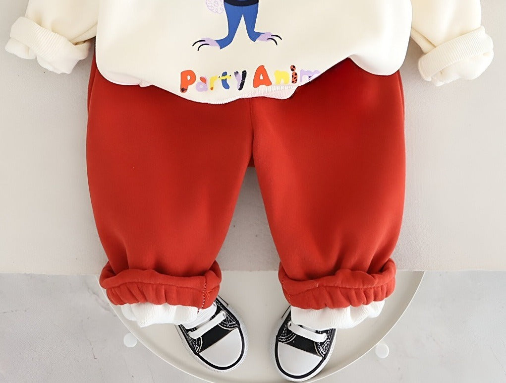 Boy's Cotton Winter Full Sleeves Animal Printed Sweatshirt & Jogger Pant Set - Red