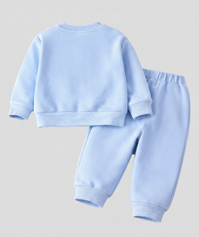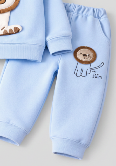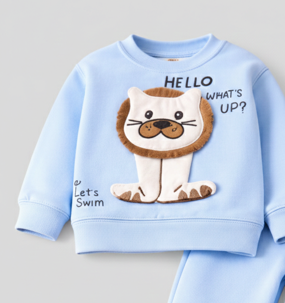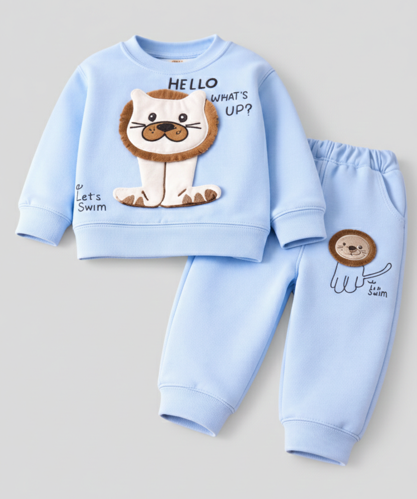 Boy's Cotton Winter Full Sleeves Hello Lion Printed Sweatshirt & Jogger Pant Set - Blue