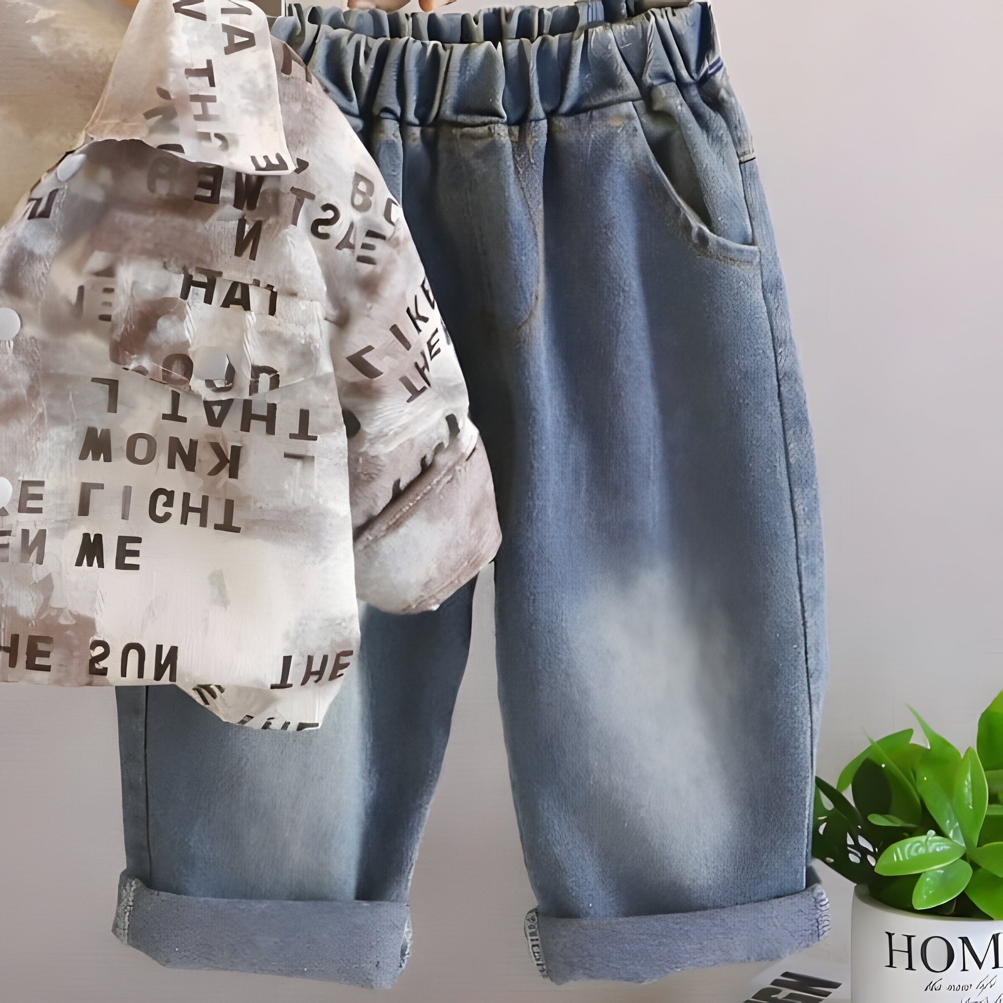 Boy's Cotton MIni Text Printed Shirt With Pant Set - Brown